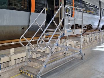 Mobila eller fasta plattformsstegar för säkert arbete på höjd för fastighetsservice, elarbeten, fönsterunderhåll, takinspektioner och annan teknisk drift. Perfekt för användning i miljöer med krav på fallskydd och ergonomi.