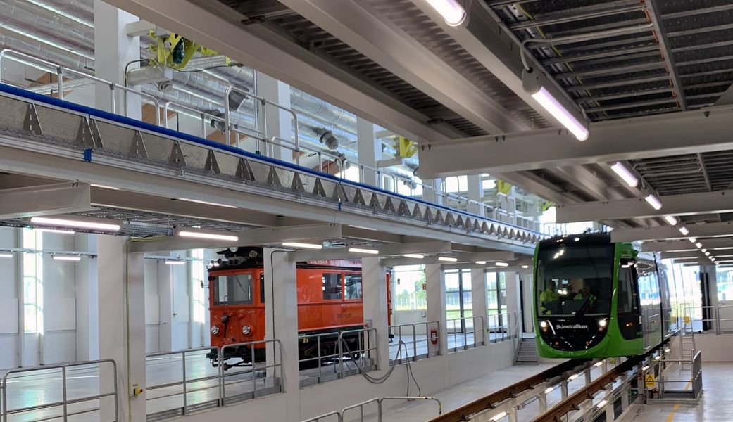 För att kunna underhålla och serva spårvagnarna behövdes det byggas en depå. Mikael Thylander som är projektledare för bygg på Region Skåne berättar att han har handlat upp Skanska som är generell entreprenör och NCC är uppköpt som husbyggare.