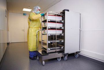 Här krävs lätta, manövrerbara och ergonomiska lösningar. För att rymma så många sterila föremål som möjligt och minimera gångavstånd måste volymen på transportvagnarna utnyttjas optimalt.