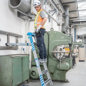 MultiMaster 5 är inte bara en stege; den är en pålitlig partner som anpassar sig till olika lägen på byggarbetsplatser, under service/underhåll och i industriella miljöer. Den enkla enhandslåsningen gör att stegen är lätt att växla mellan olika lägen. Höjden på stödsidan går att justera inför användning i trappor eller som enkelstege med väggstöd. Med fem olika lägen erbjuder MultiMaster 5 enastående mångsidighet: