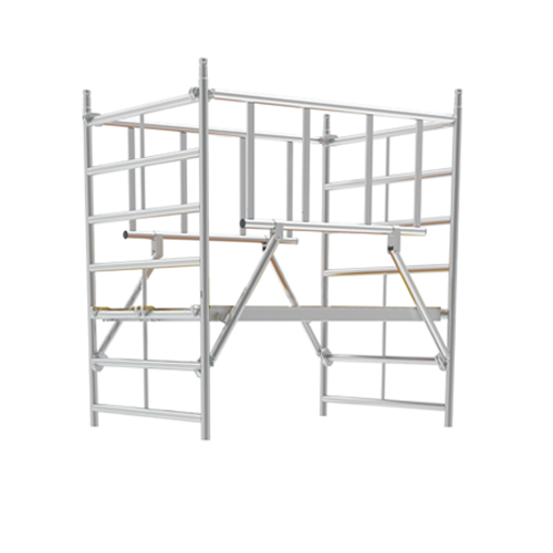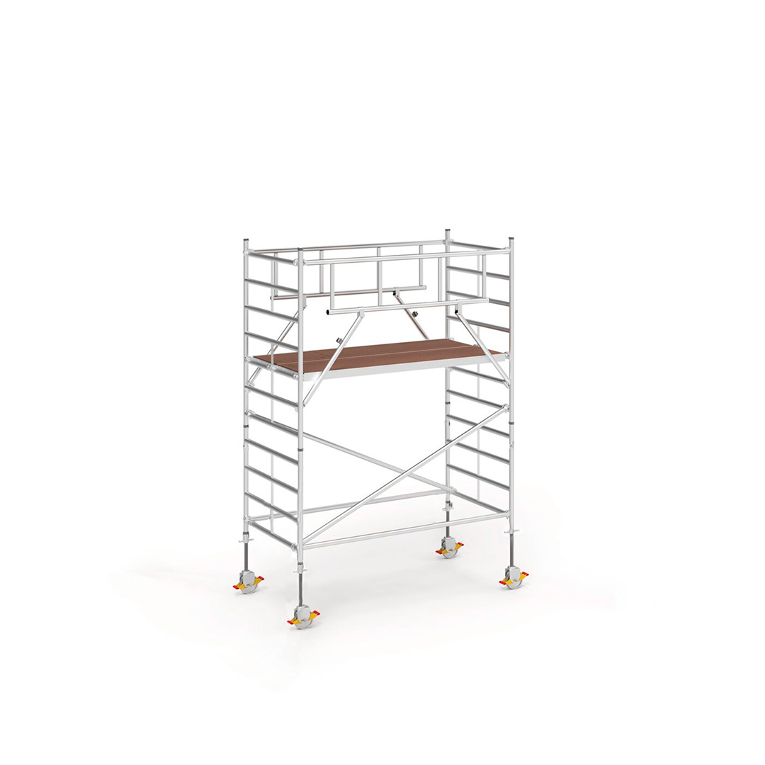 MultiTower har dubbelbredd för maximal arbetsyta, säker och snabb uppmontering tack vare S-PLUS skyddsräcke med integrerade diagonala stag, lågt plattformsavstånd och färre komponenter.