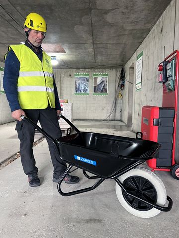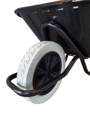 Förstärkt murbrukskärra med punkteringsfritt hjul