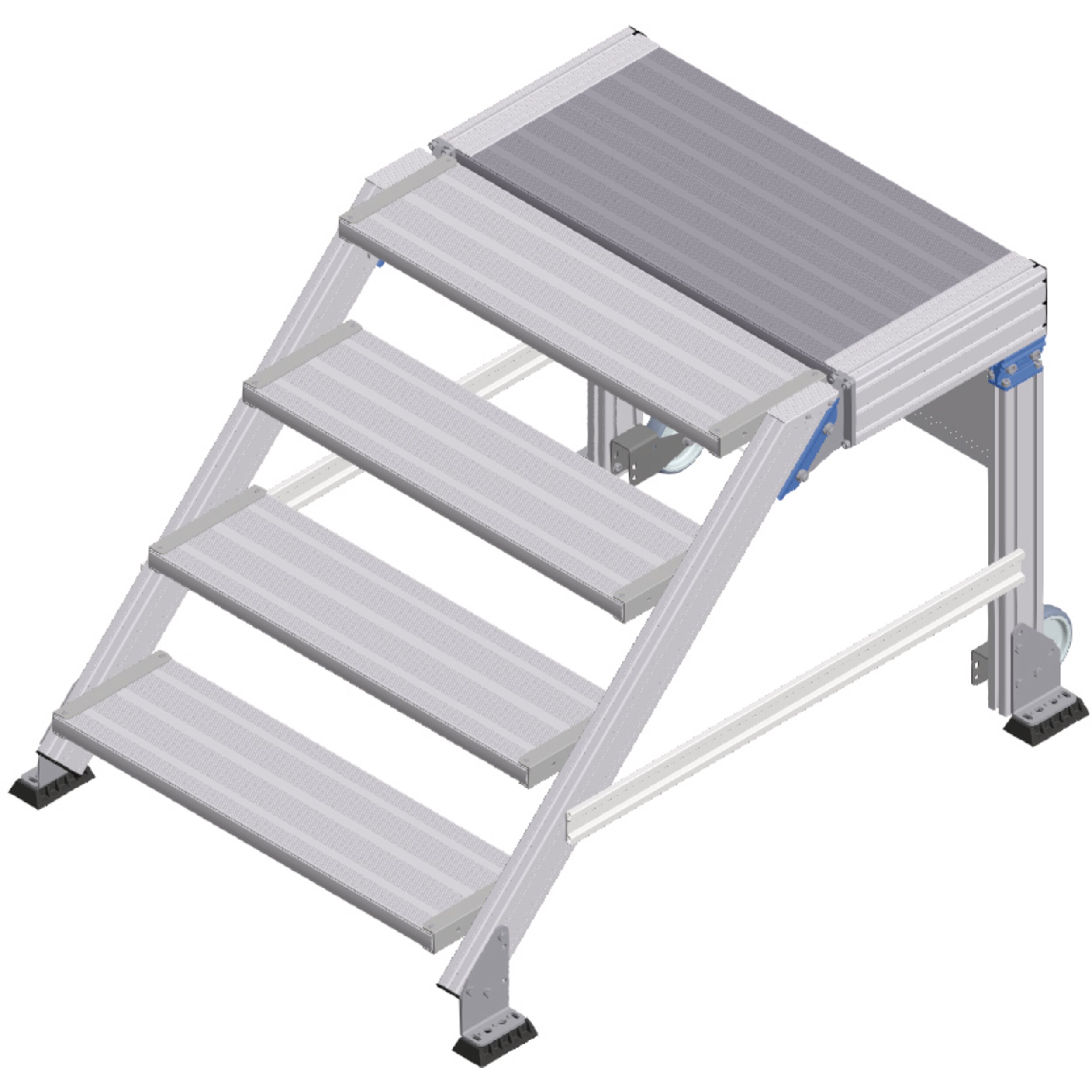 Kompakt çalışma platformu, konforlu tırmanma olanaklı. Sabit ve hareketli model arasından seçim yapılabilir (çalışma alanının hızlı bir şekilde değiştirilmesi için). Uzun süren çalışmalar için ideal düzeyde uygundur, aletle de.