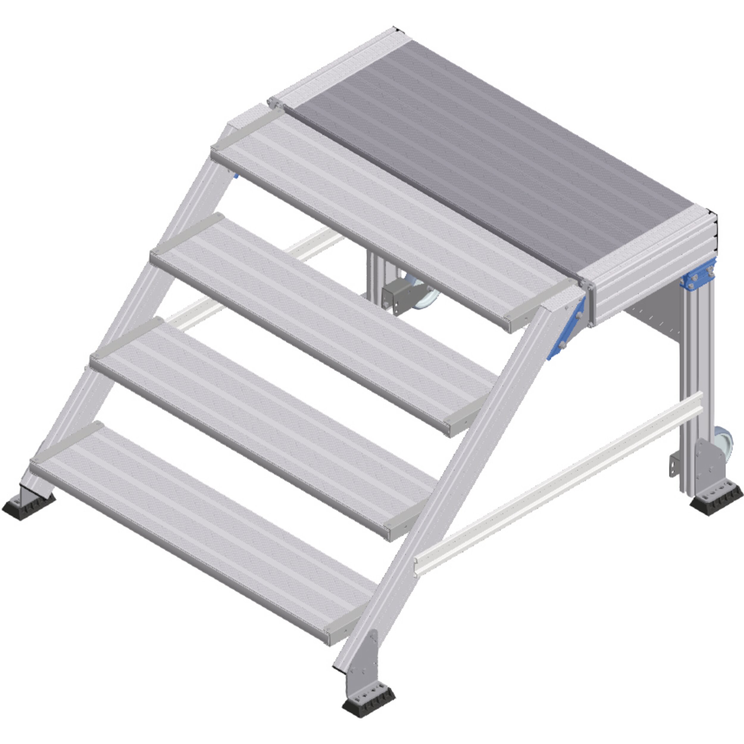 Kompakt çalışma platformu, konforlu tırmanma olanaklı. Sabit ve hareketli model arasından seçim yapılabilir (çalışma alanının hızlı bir şekilde değiştirilmesi için). Uzun süren çalışmalar için ideal düzeyde uygundur, aletle de.