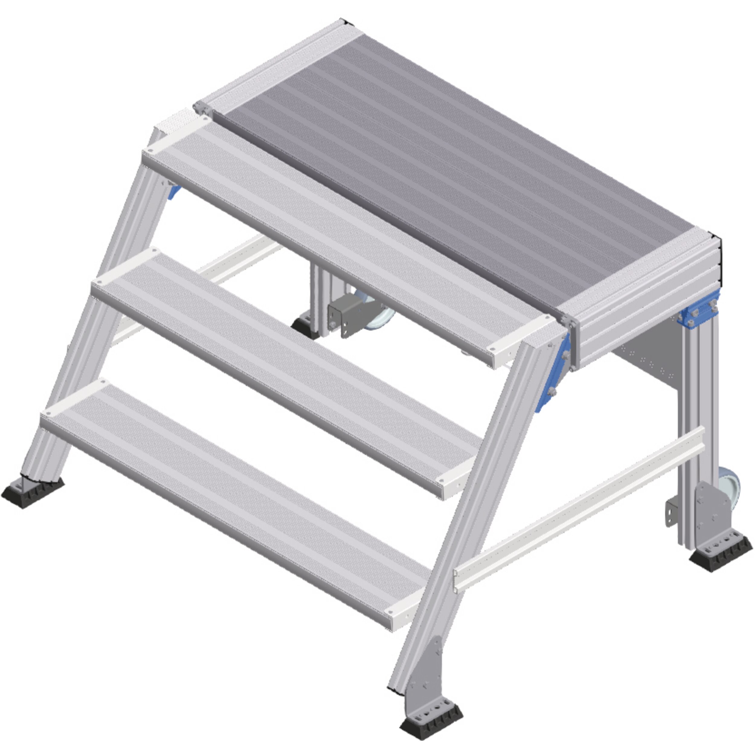 Kompakt çalışma platformu, konforlu tırmanma olanaklı. Sabit ve hareketli model arasından seçim yapılabilir (çalışma alanının hızlı bir şekilde değiştirilmesi için). Uzun süren çalışmalar için ideal düzeyde uygundur, aletle de.