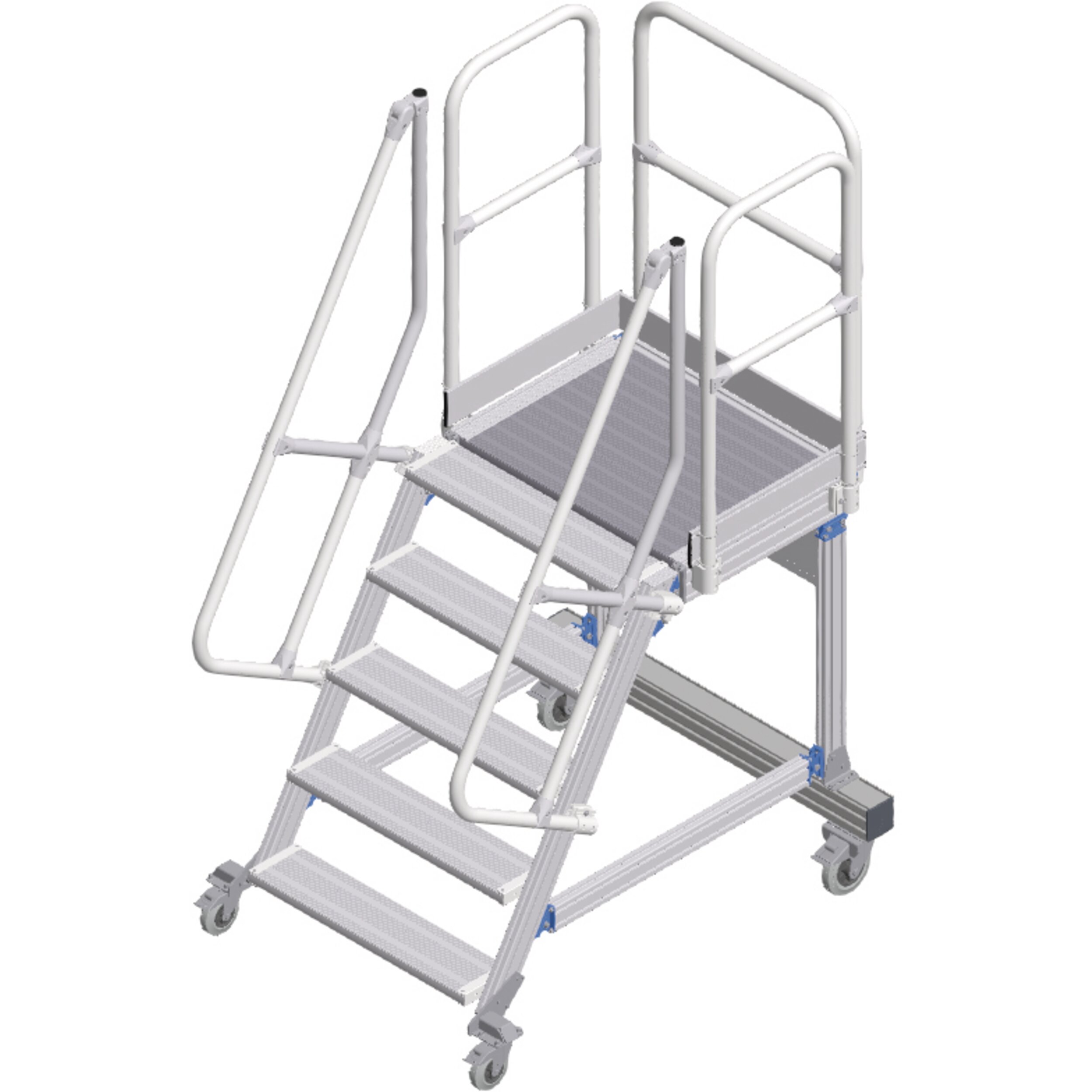 Mobil erişim veya çalışma platformu, konforlu tırmanma olanaklı. Uzun süren çalışmalar için ideal düzeyde uygundur, aletle ve çalışma alanının sıkça değiştirildiği durumlarda da. Yüksekte güvenli ve ergonomik şekilde çalışmak için korkuluklu büyük yüzeyli platform.