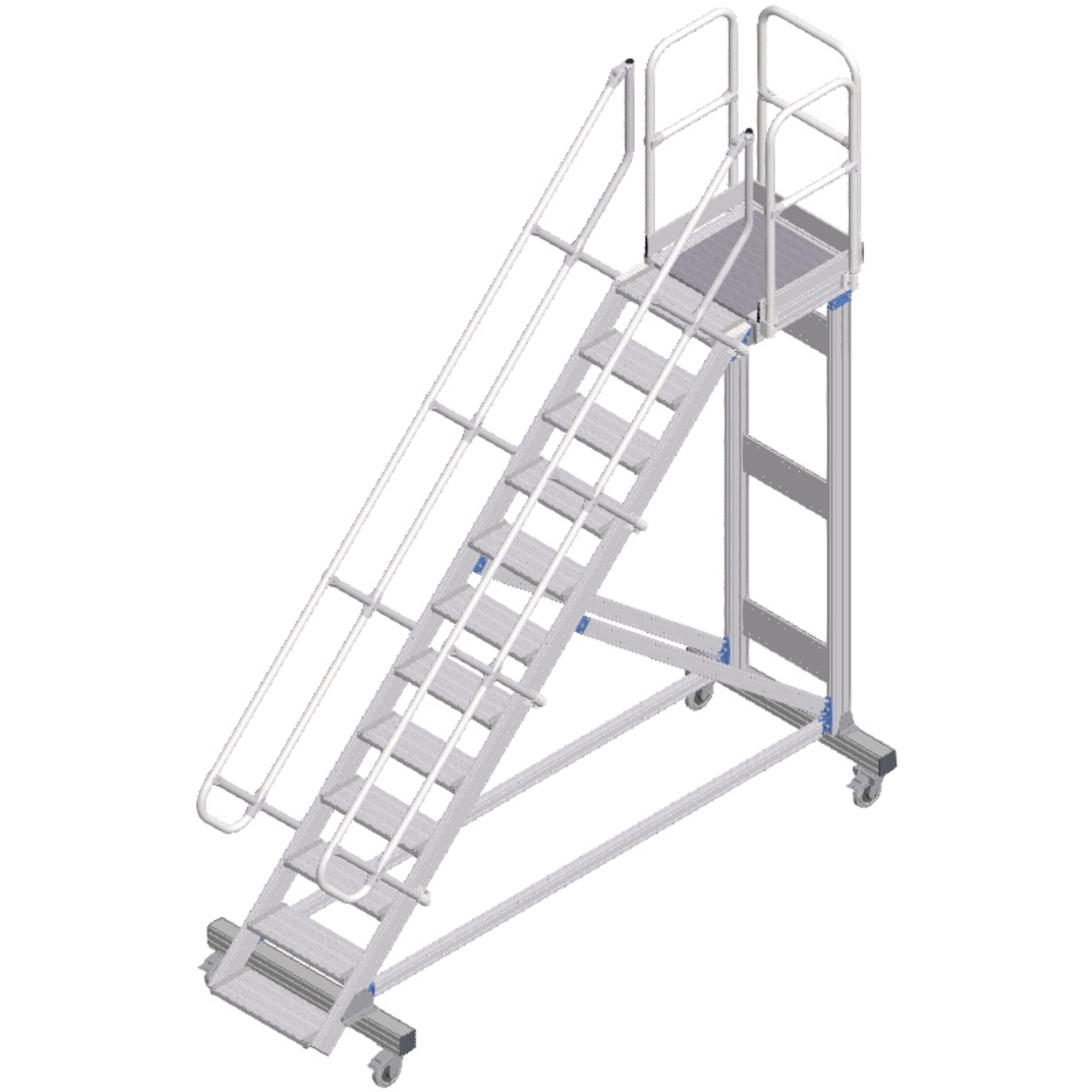 Mobil erişim veya çalışma platformu, konforlu tırmanma olanaklı. Uzun süren çalışmalar için ideal düzeyde uygundur, aletle ve çalışma alanının sıkça değiştirildiği durumlarda da. Yüksekte güvenli ve ergonomik şekilde çalışmak için korkuluklu büyük yüzeyli platform.