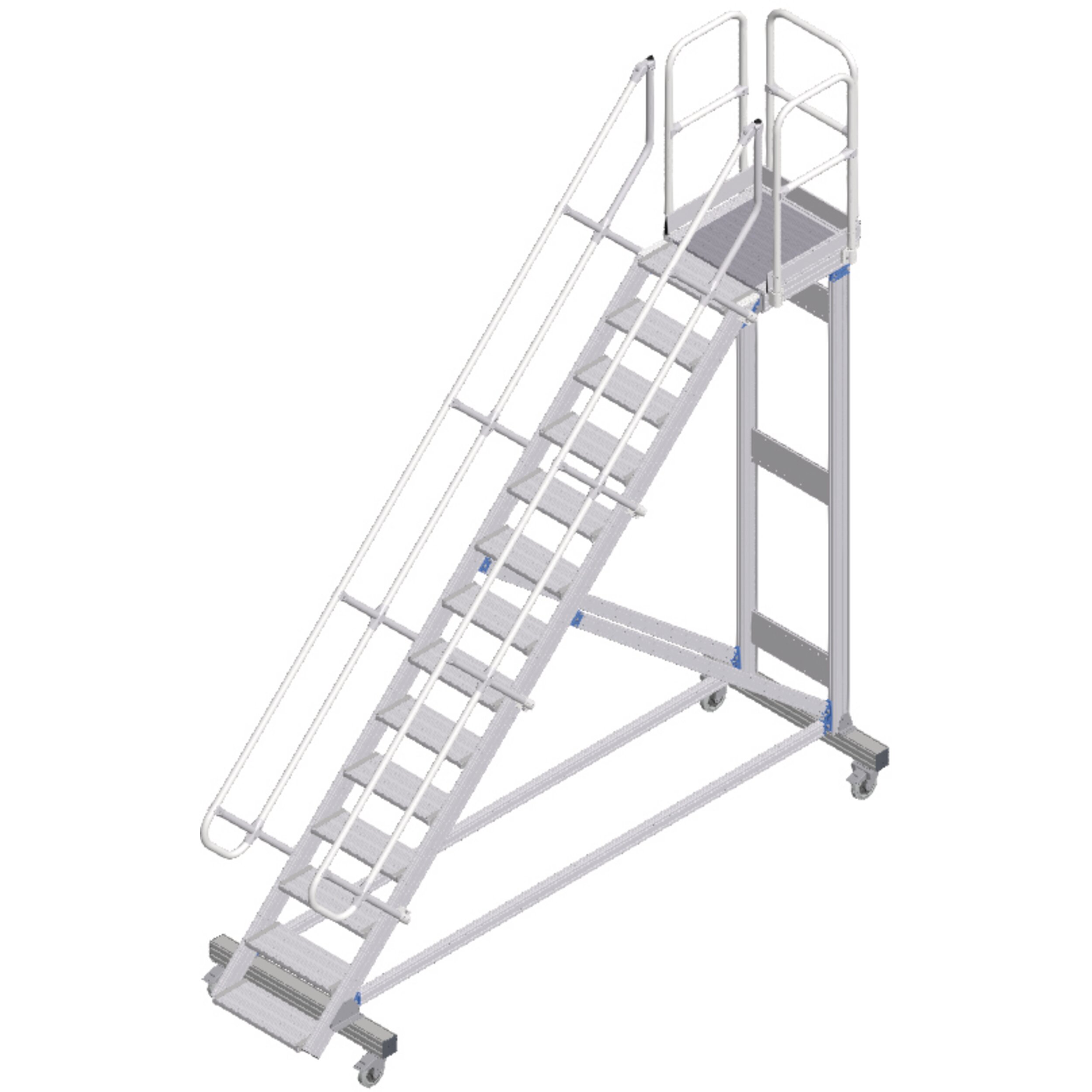 Mobil erişim veya çalışma platformu, konforlu tırmanma olanaklı. Uzun süren çalışmalar için ideal düzeyde uygundur, aletle ve çalışma alanının sıkça değiştirildiği durumlarda da. Yüksekte güvenli ve ergonomik şekilde çalışmak için korkuluklu büyük yüzeyli platform.