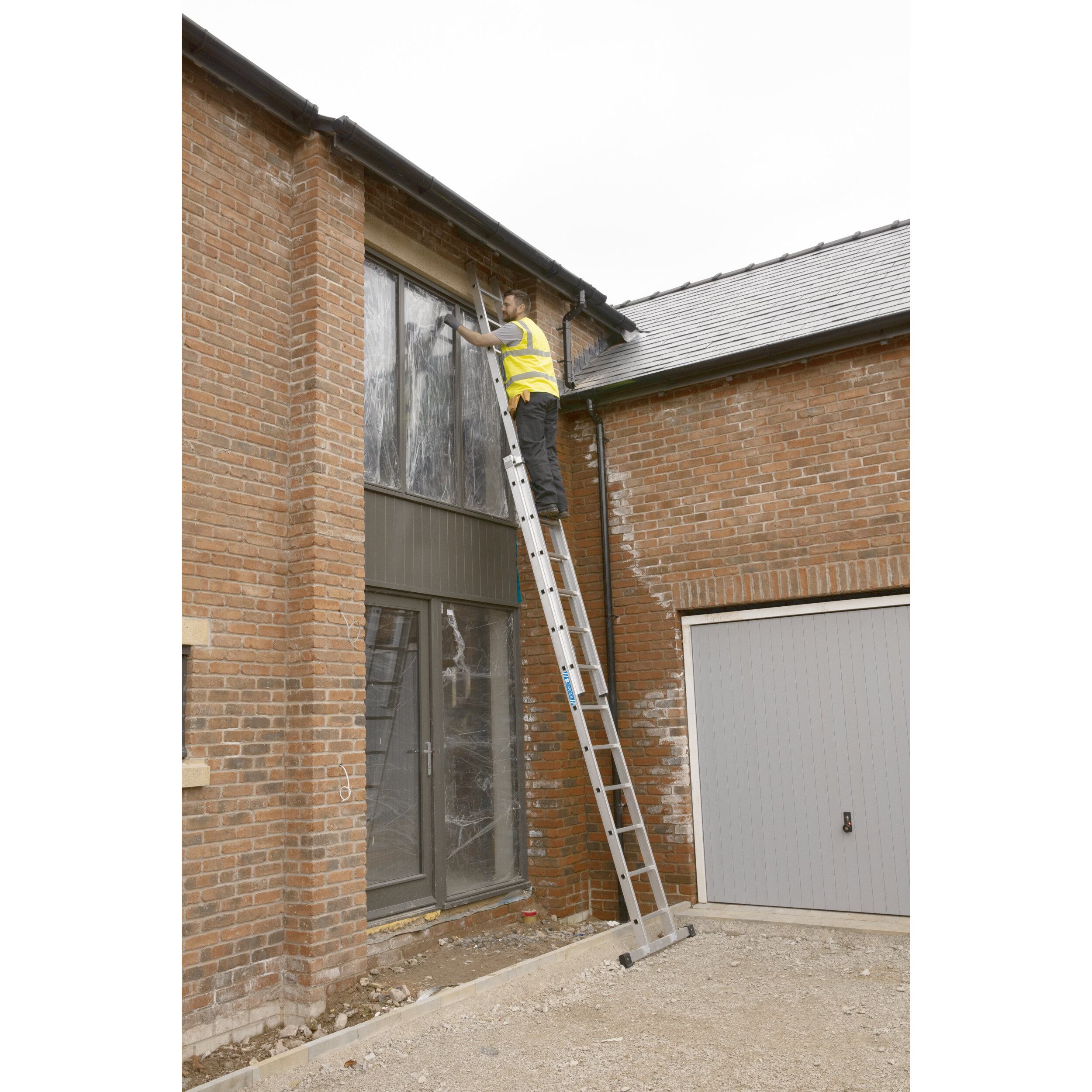 Built for trade and industrial use, the Everest Square-Rung Double Extension Ladder is made in the UK, EN131 certified, and designed for strength, stability, and safety.