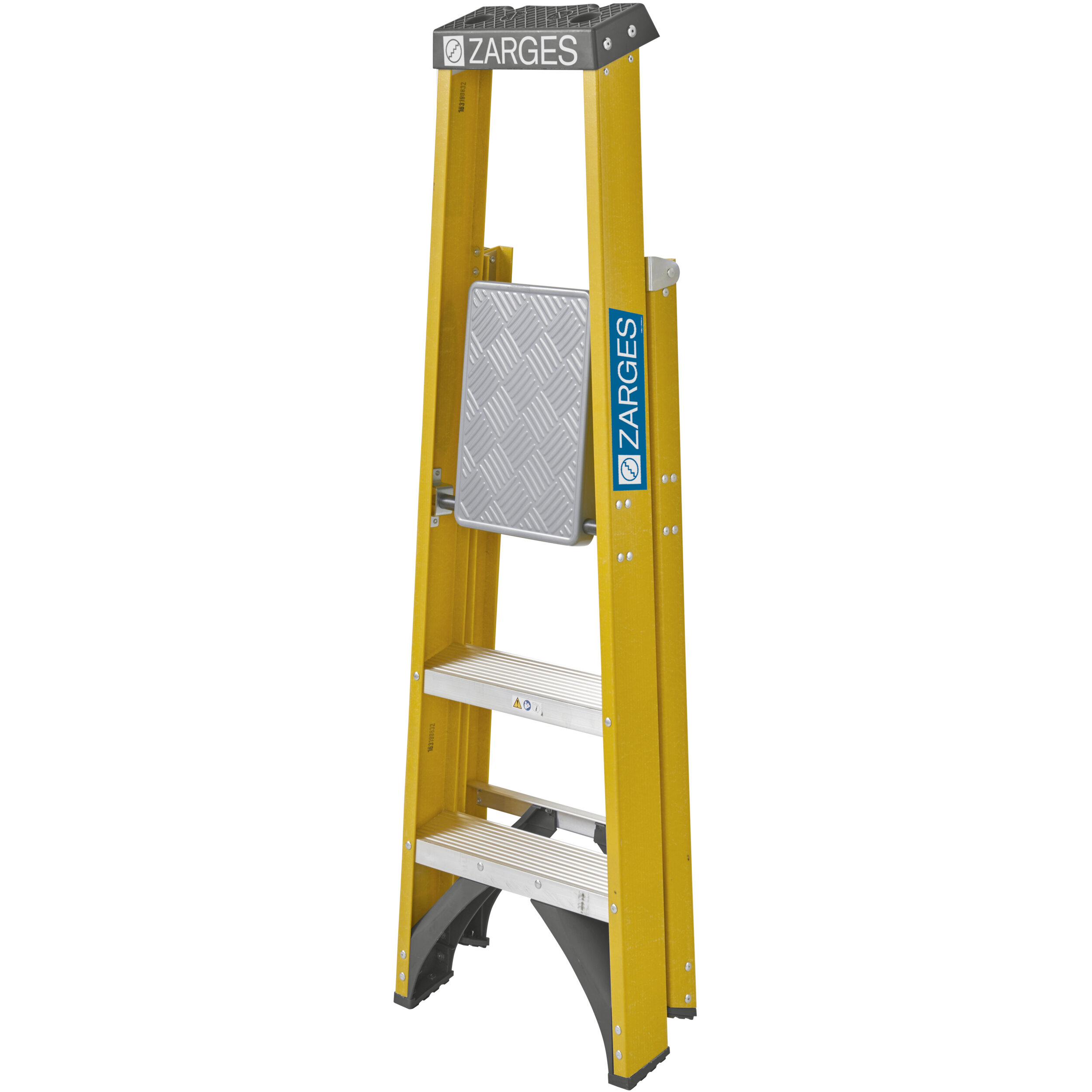Constructed from strong and resilient fibreglass, the ZARGES Fibreglass Platform Stepladder is long-lasting and capable of withstanding heavy use. Ideal for use near electrical hazards.
