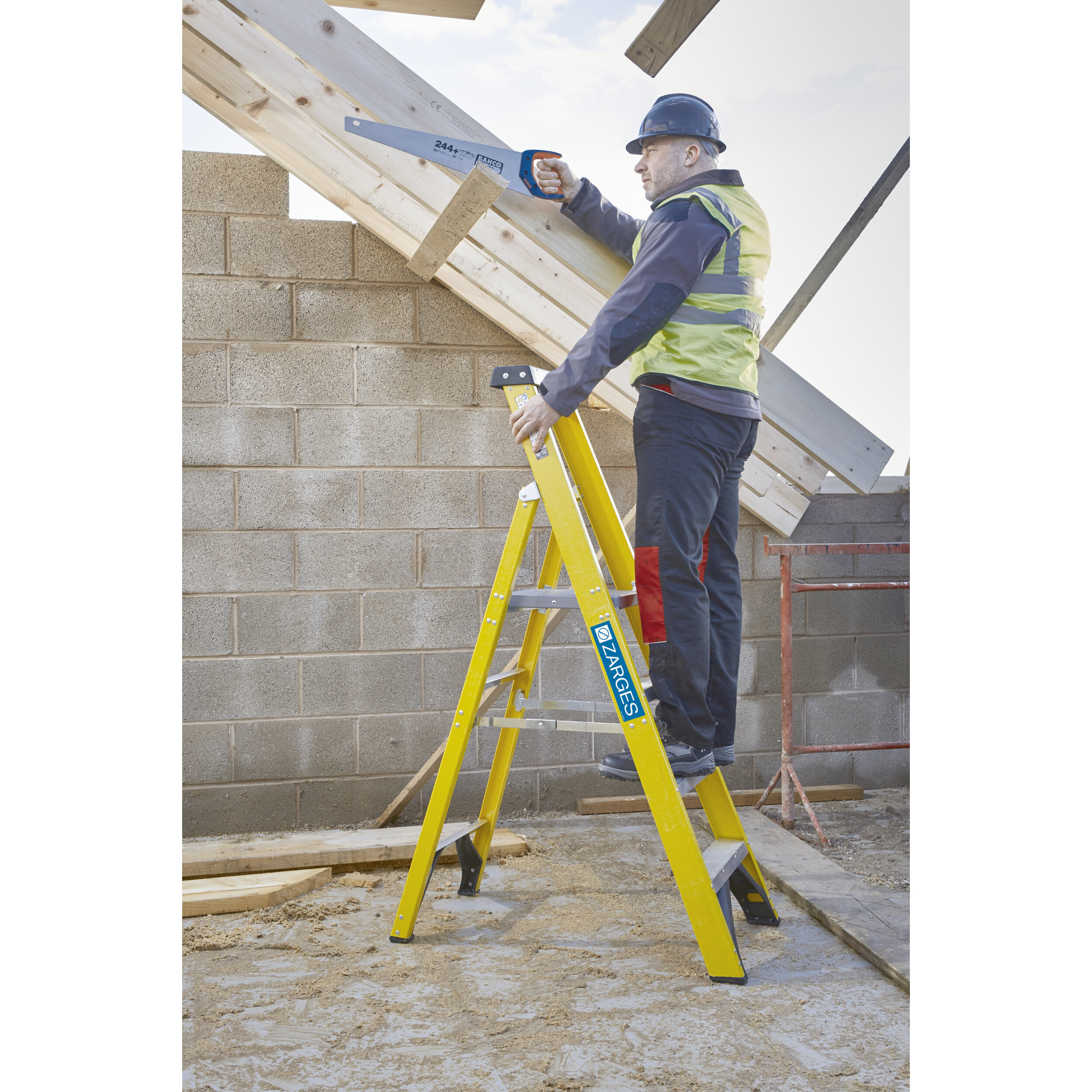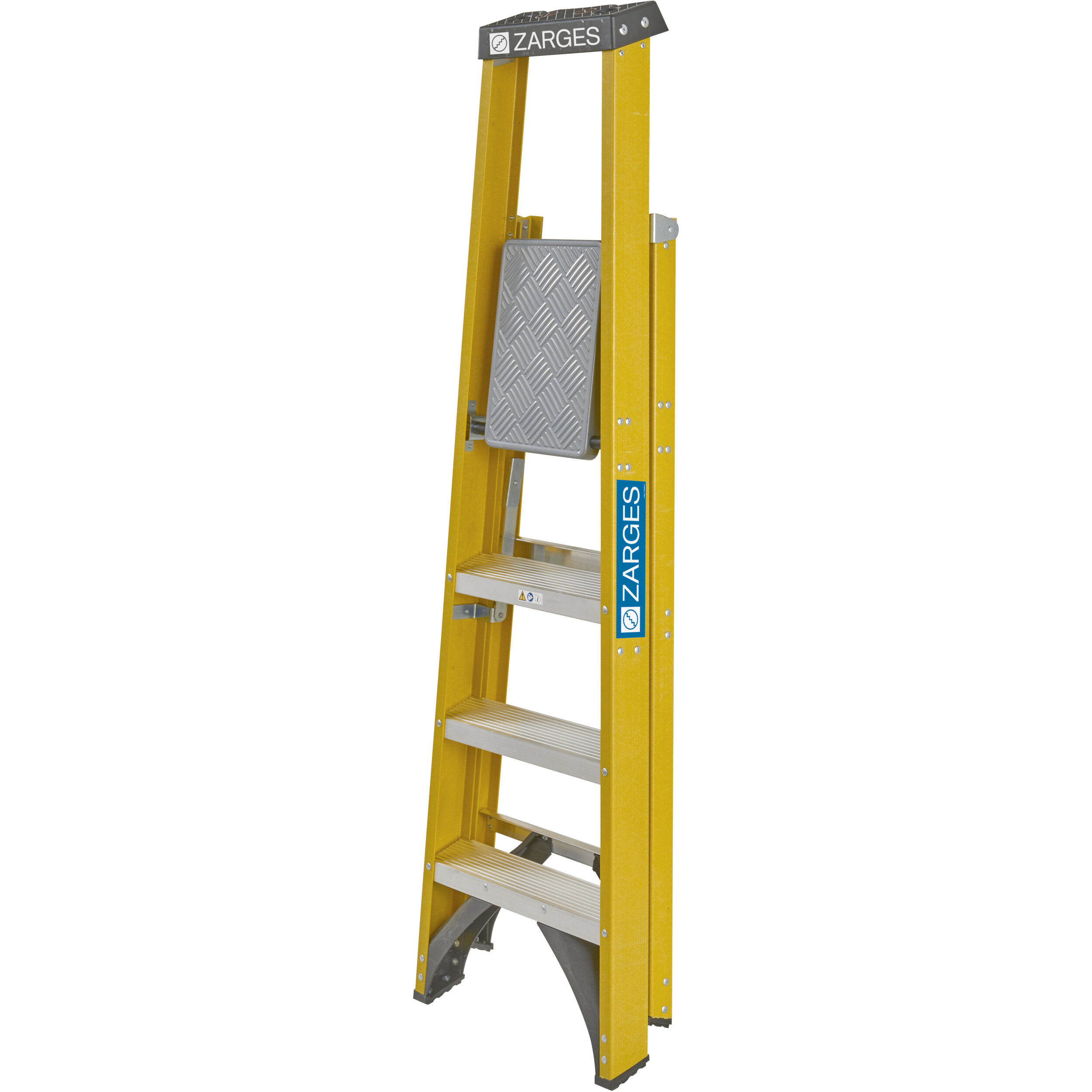 Constructed from strong and resilient fibreglass, the ZARGES Fibreglass Platform Stepladder is long-lasting and capable of withstanding heavy use. Ideal for use near electrical hazards.