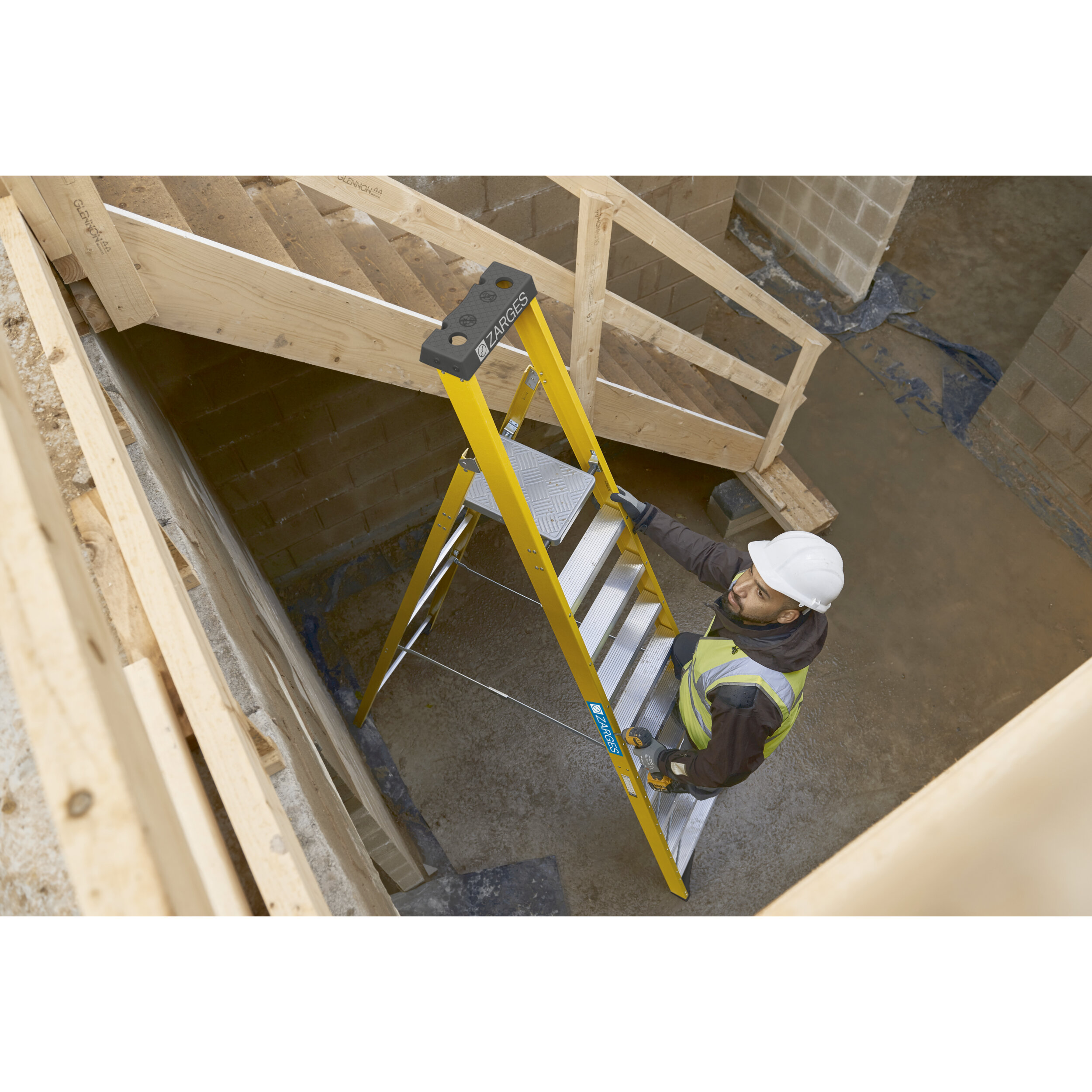 Constructed from strong and resilient fibreglass, the ZARGES Fibreglass Platform Stepladder is long-lasting and capable of withstanding heavy use. Ideal for use near electrical hazards.