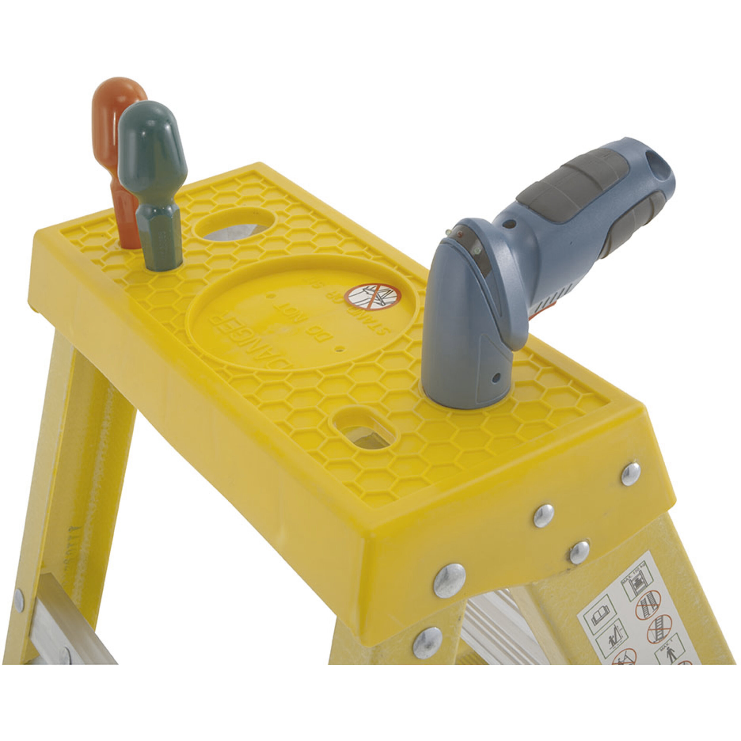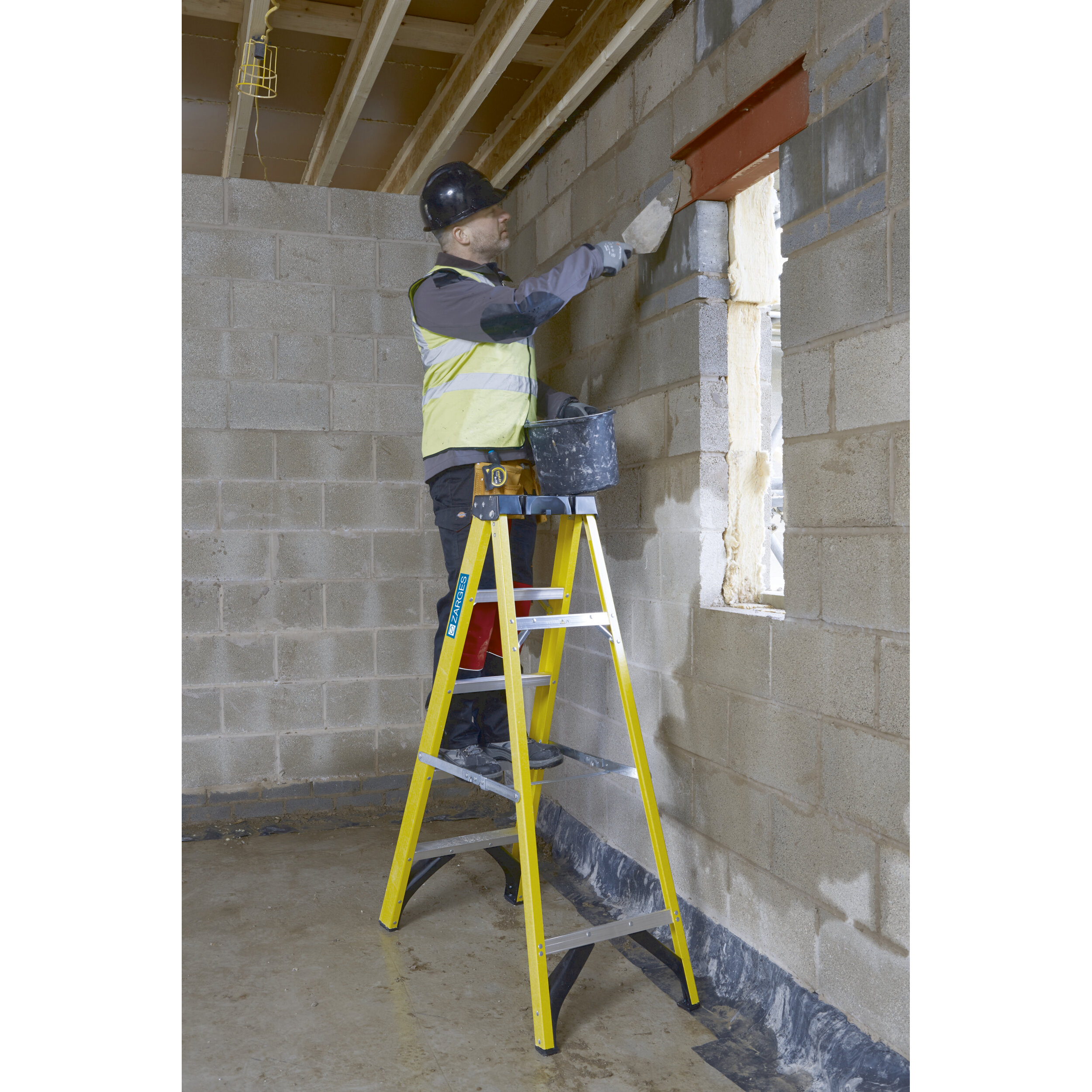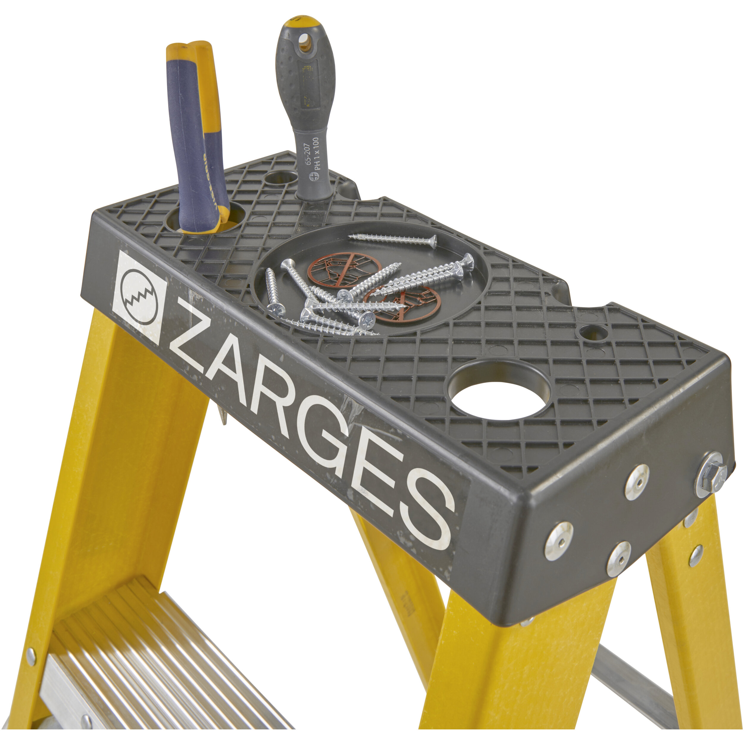Constructed from strong and resilient fibreglass, the ZARGES fibreglass Swingback Stepladder is long-lasting and capable of withstanding heavy use. Ideal for use near electrical hazards.