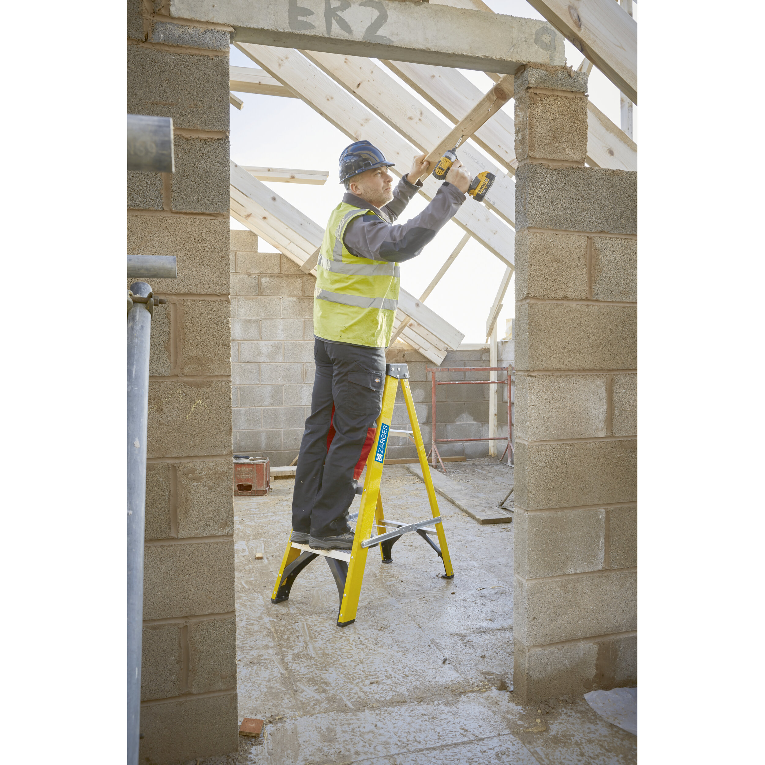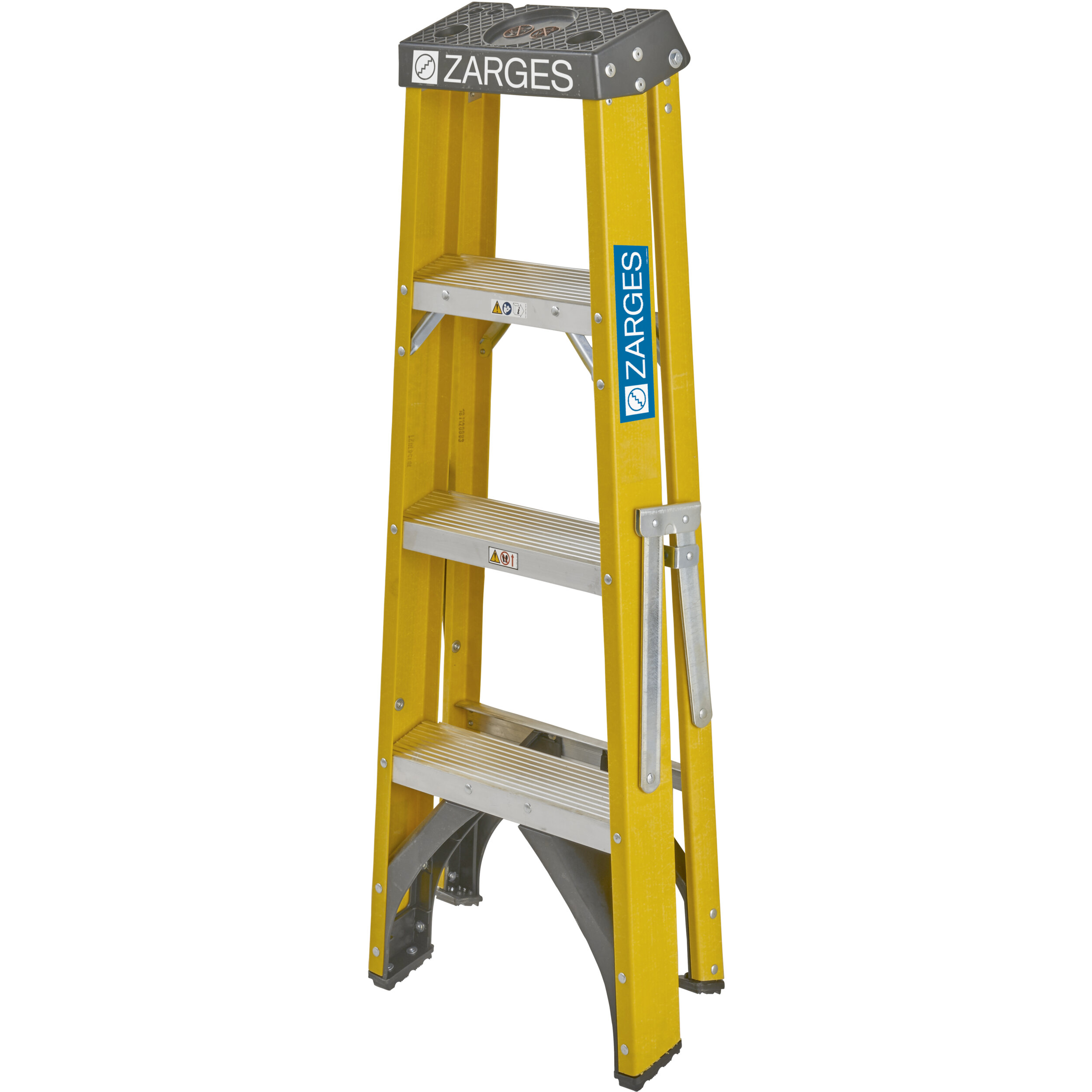 Constructed from strong and resilient fibreglass, the ZARGES fibreglass Swingback Stepladder is long-lasting and capable of withstanding heavy use. Ideal for use near electrical hazards.