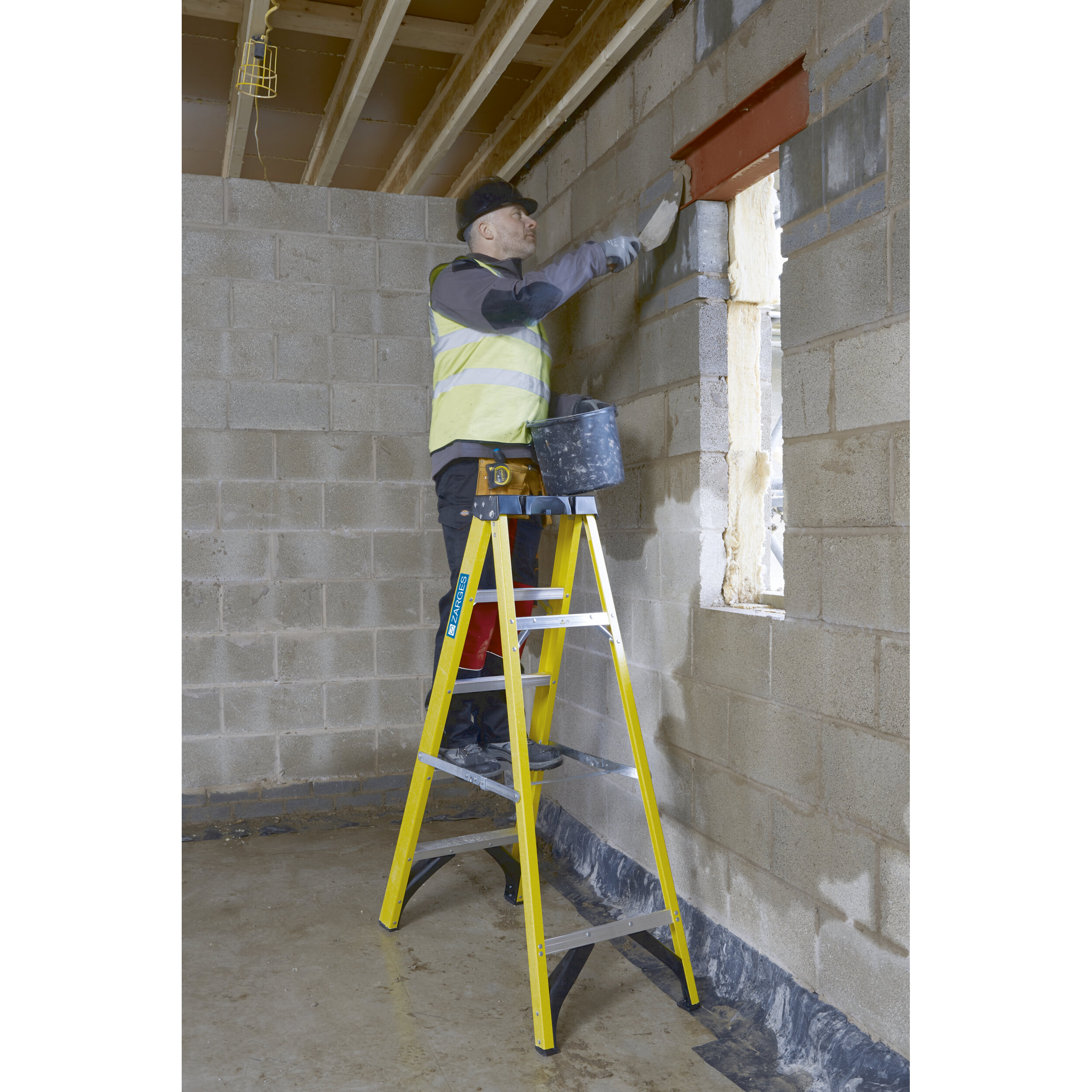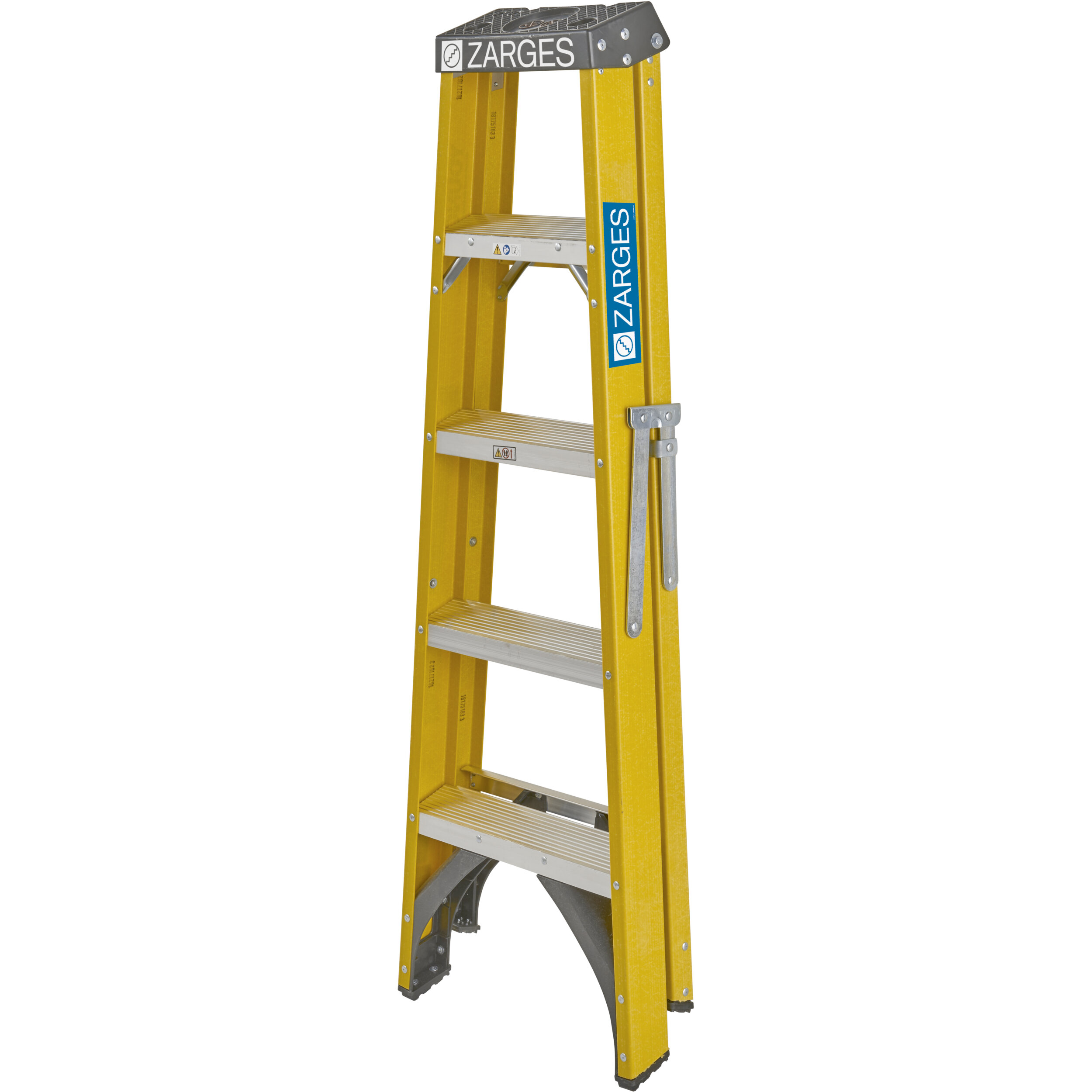 Constructed from strong and resilient fibreglass, the ZARGES fibreglass Swingback Stepladder is long-lasting and capable of withstanding heavy use. Ideal for use near electrical hazards.