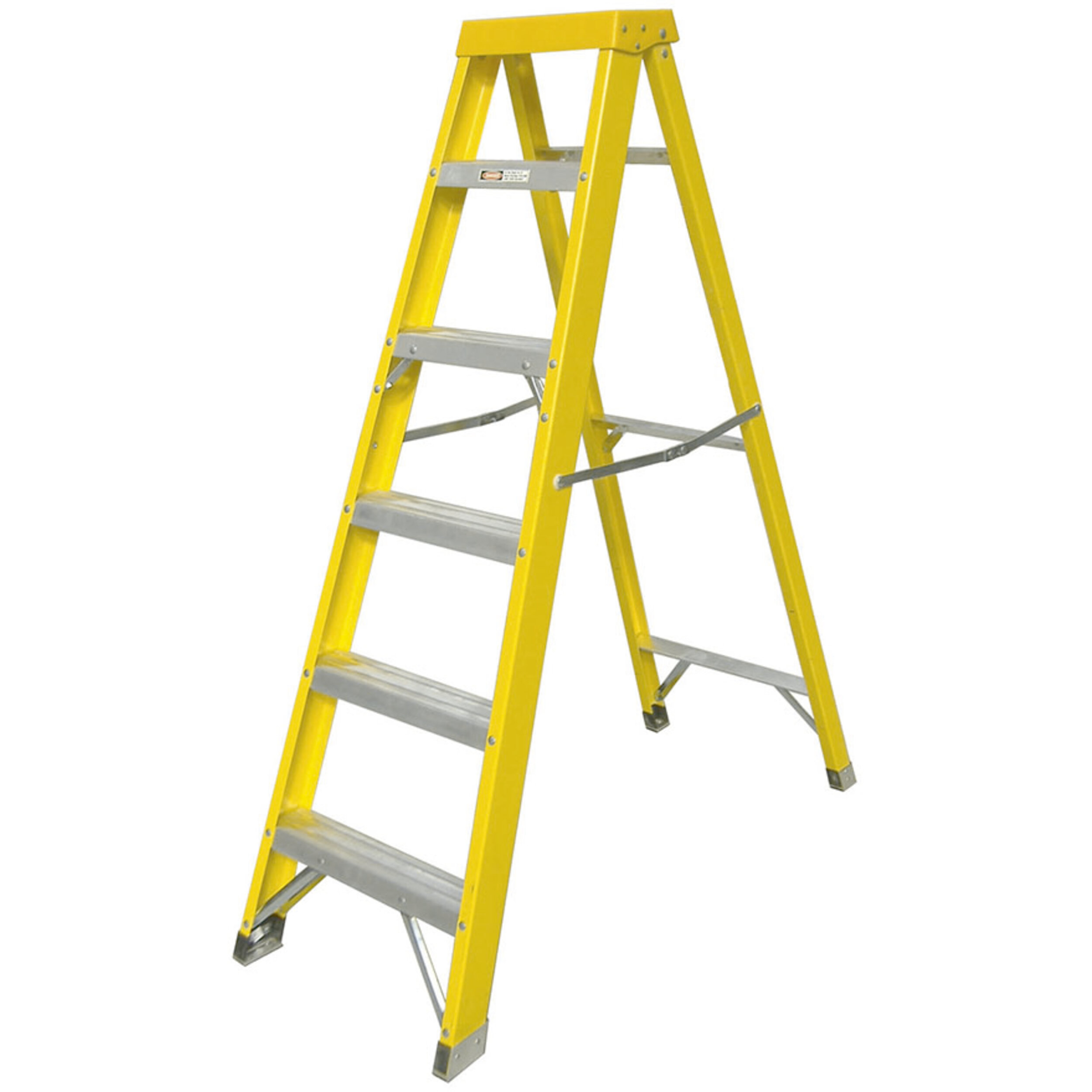Constructed from strong and resilient fibreglass, the ZARGES fibreglass Swingback Stepladder is long-lasting and capable of withstanding heavy use. Ideal for use near electrical hazards.
