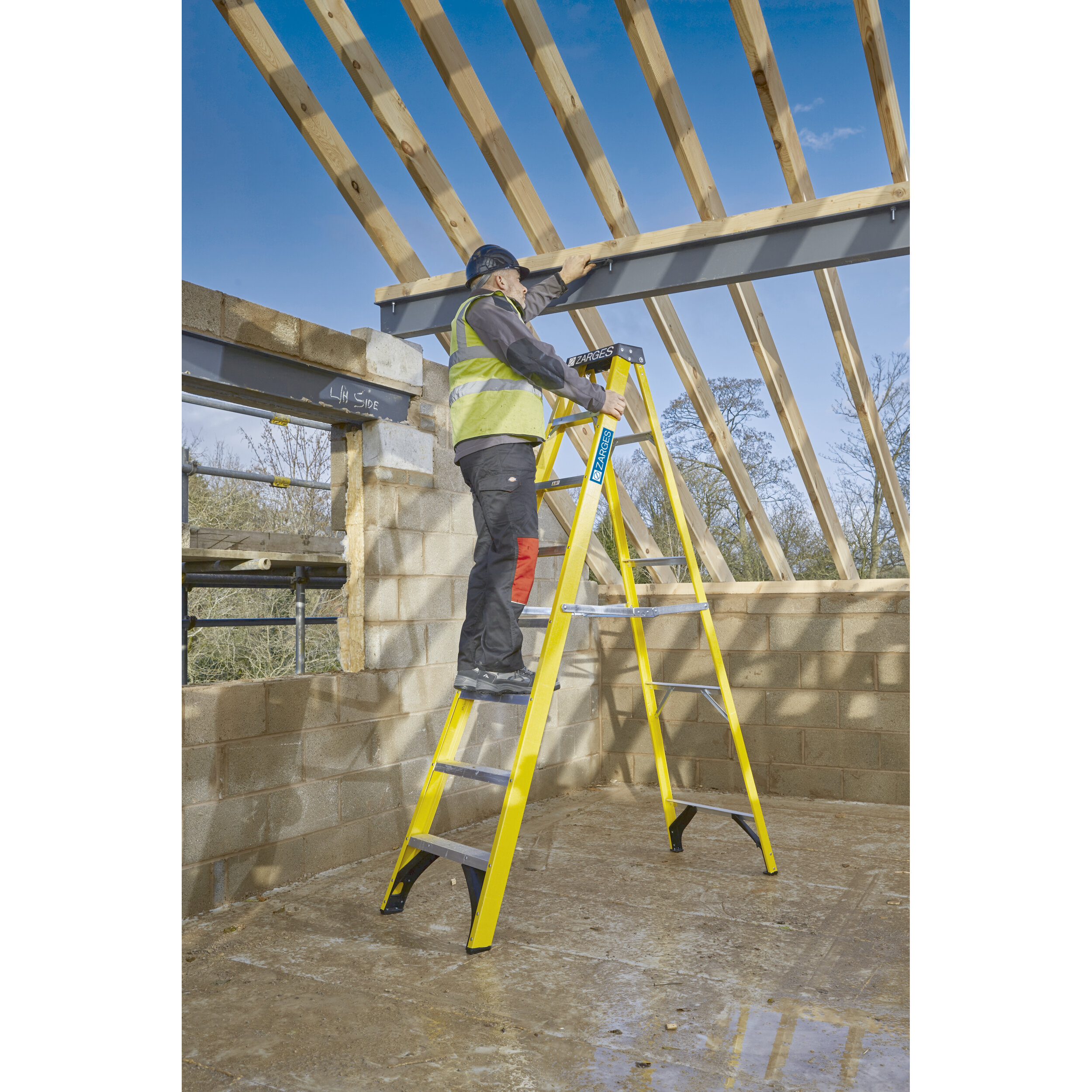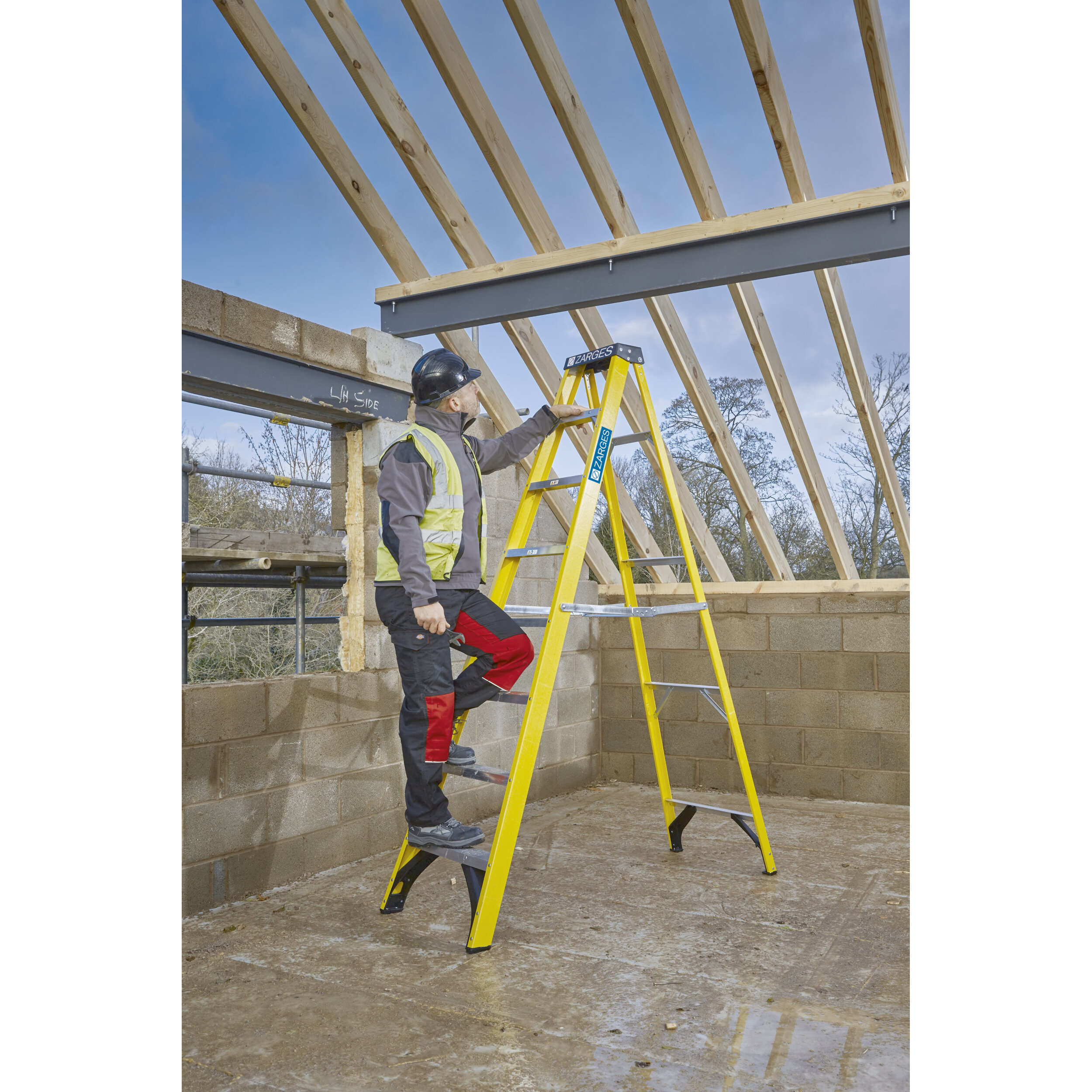 Constructed from strong and resilient fibreglass, the ZARGES fibreglass Swingback Stepladder is long-lasting and capable of withstanding heavy use. Ideal for use near electrical hazards.
