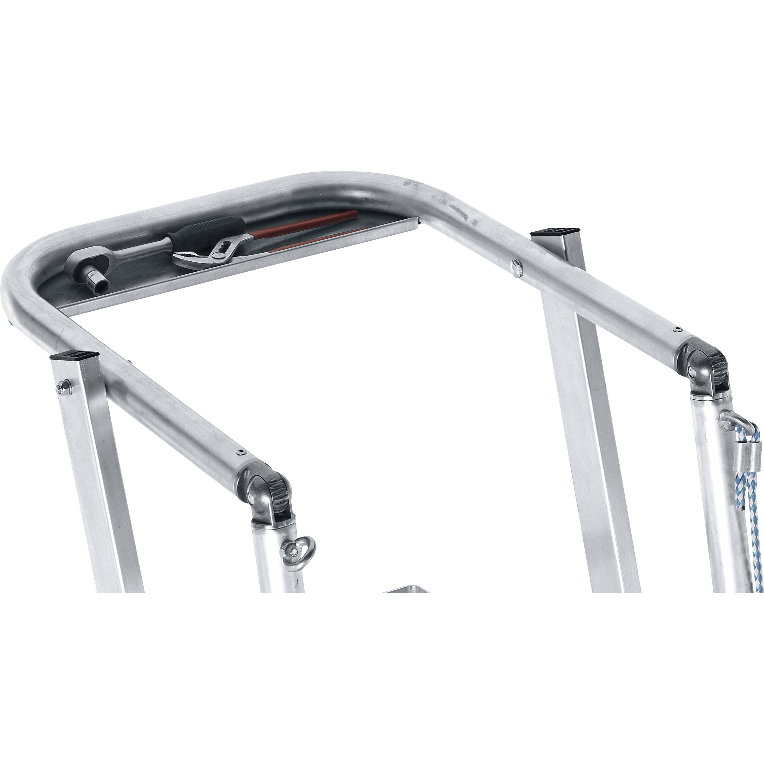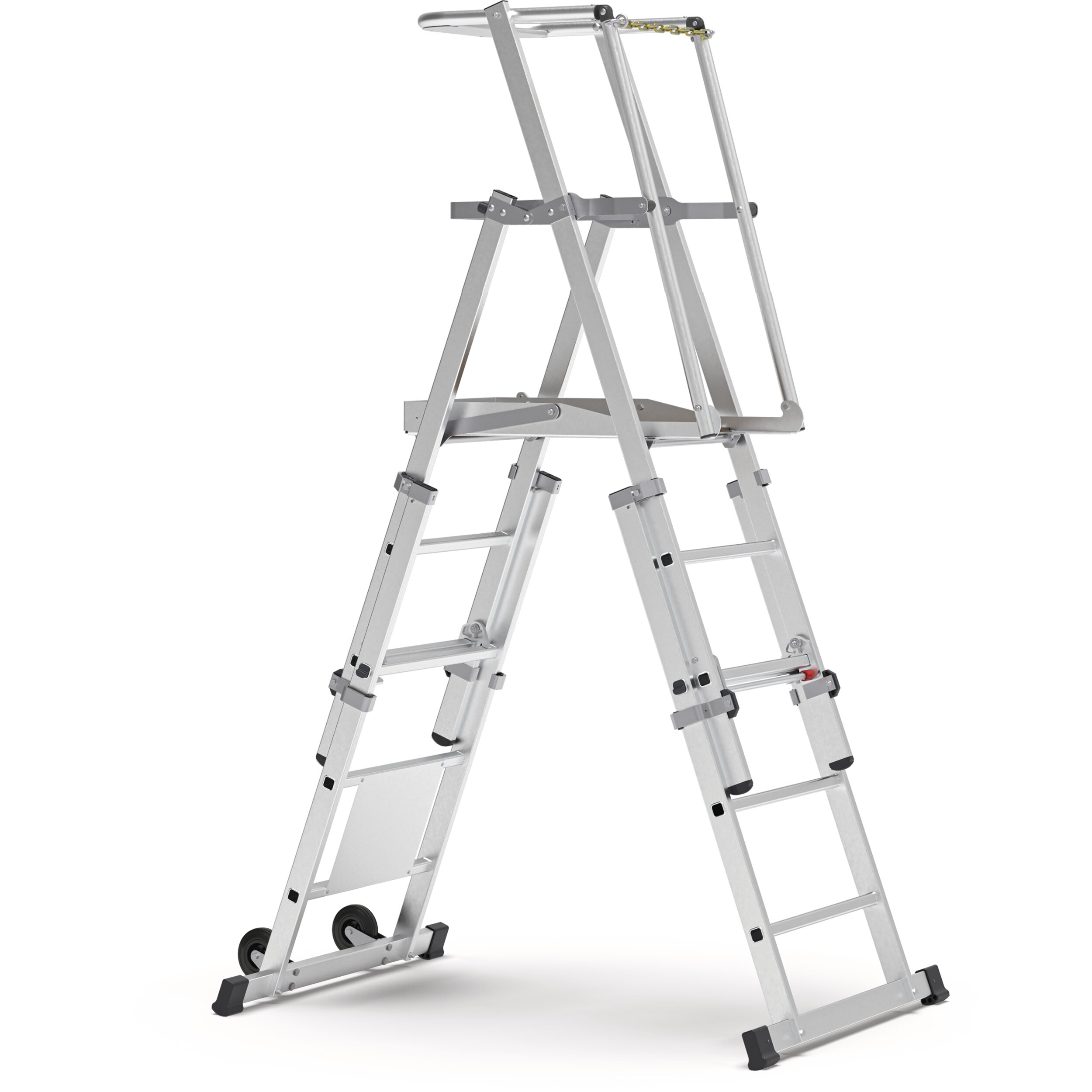 Secure and flexible: height adjustable platform with all-round railing for stability, easy to adjust with compact closed dimensions.