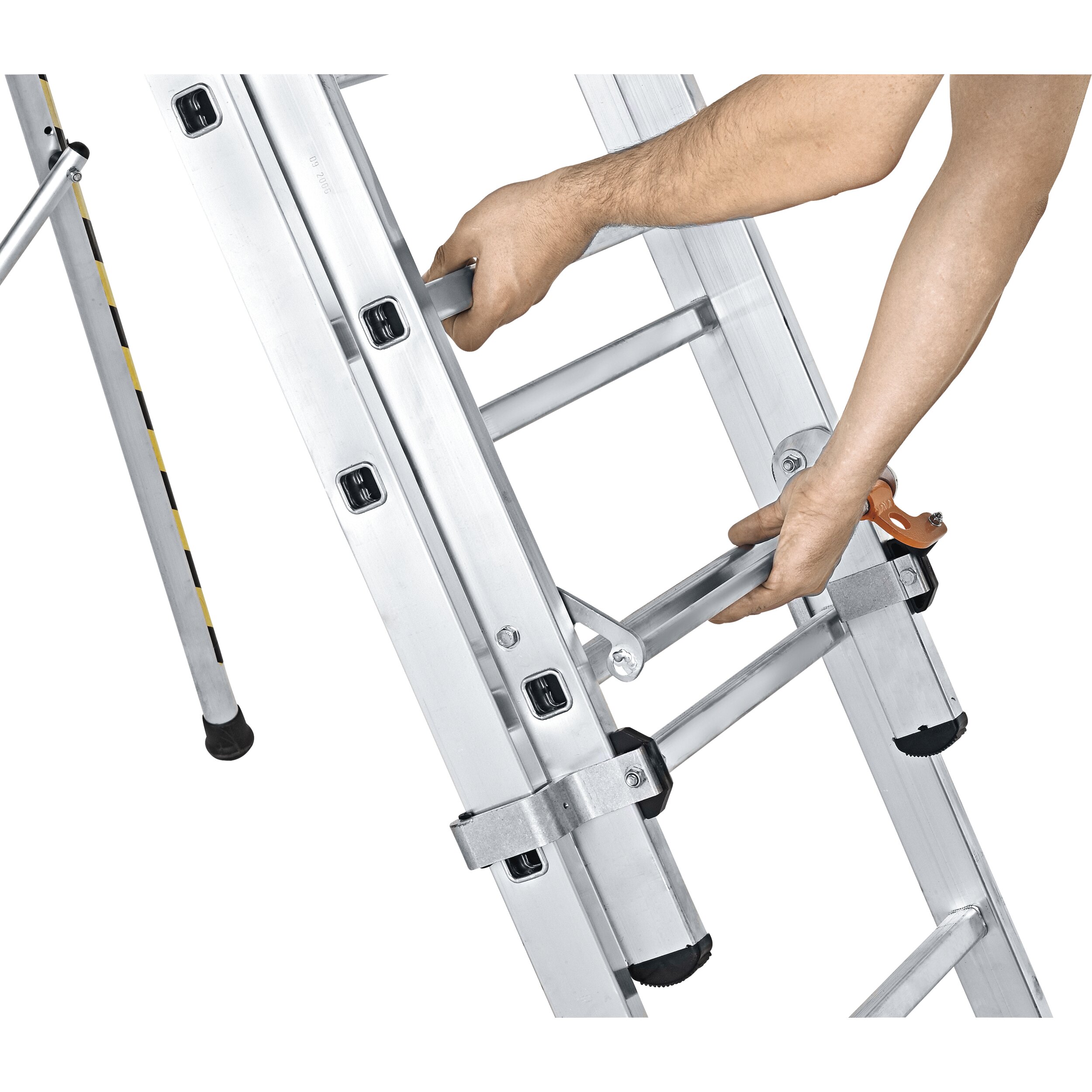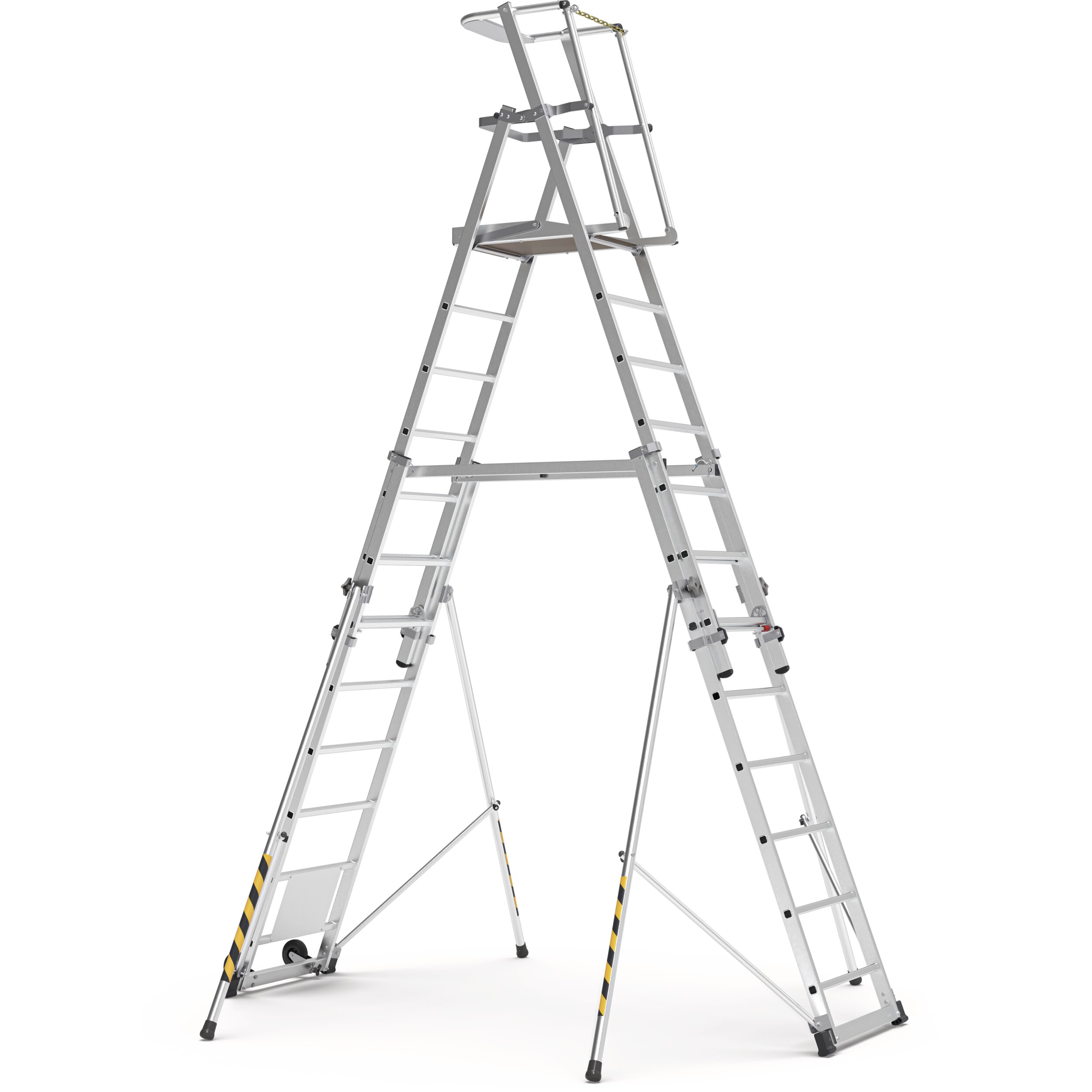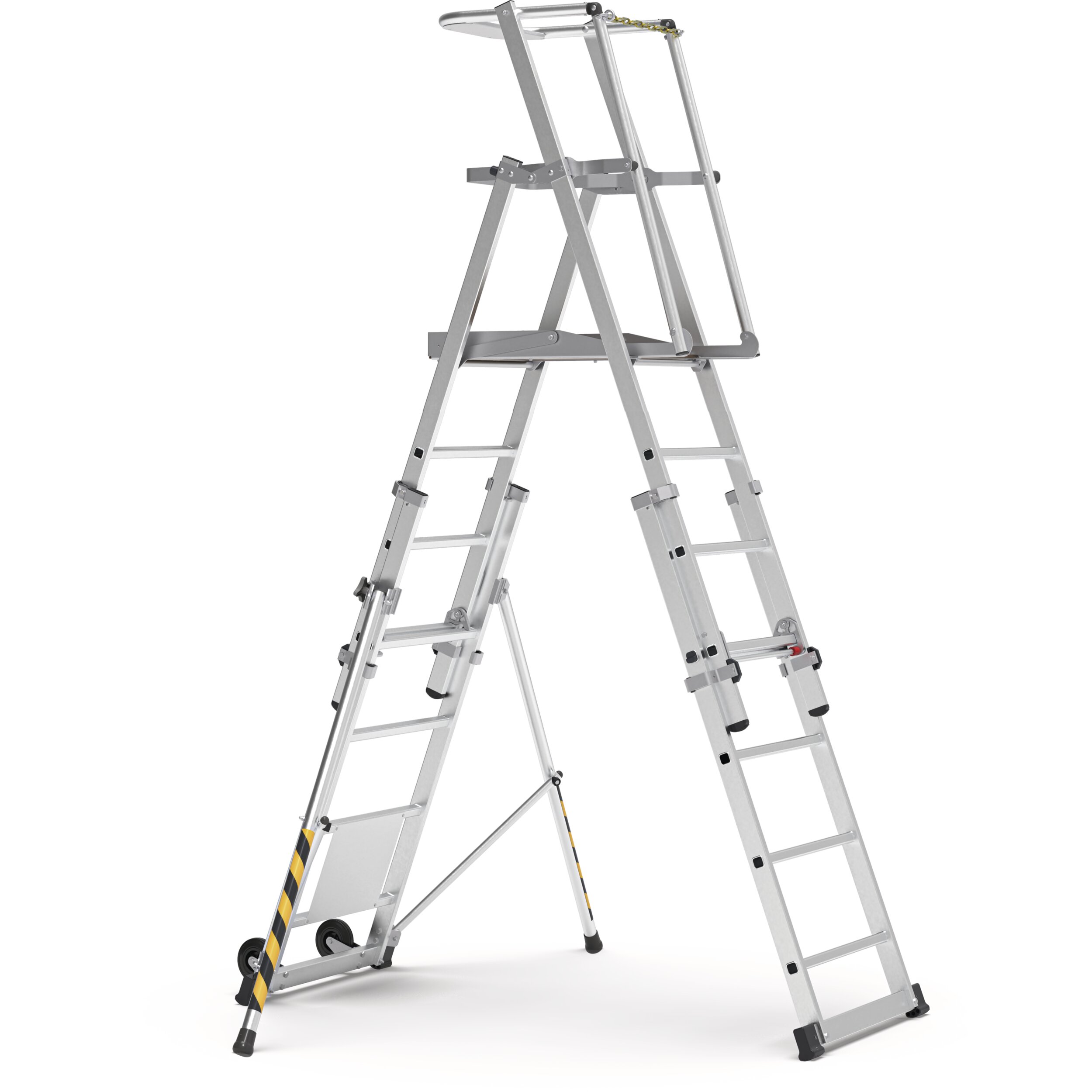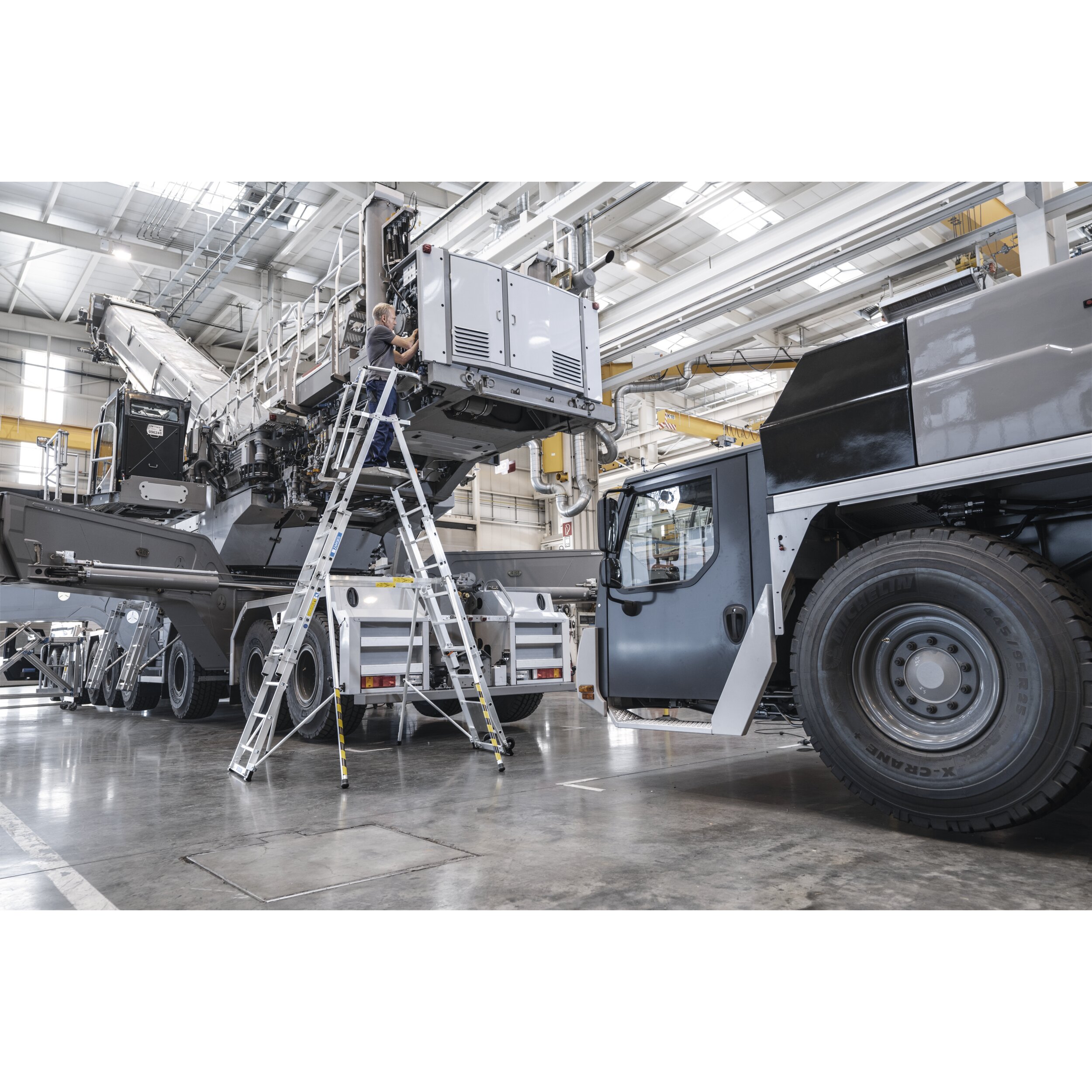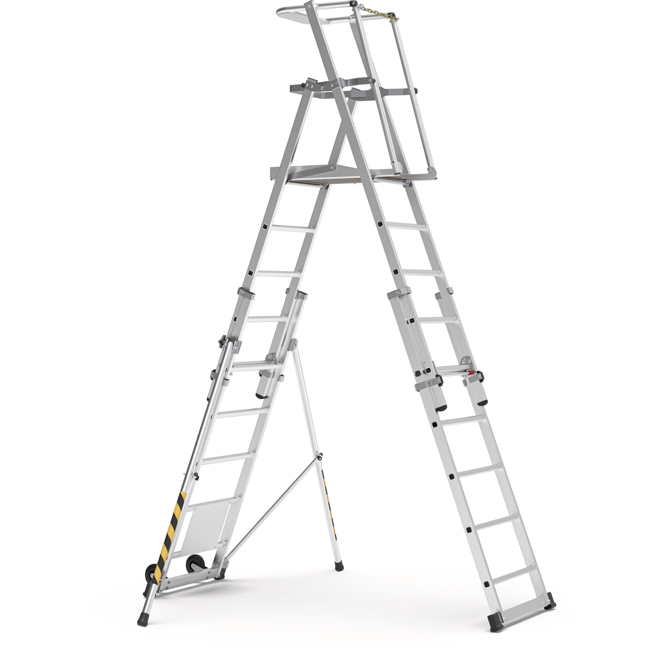 • Simple height adjustment according to the push-up ladder principle, thus different heights can be obtained with only one platform ladder.