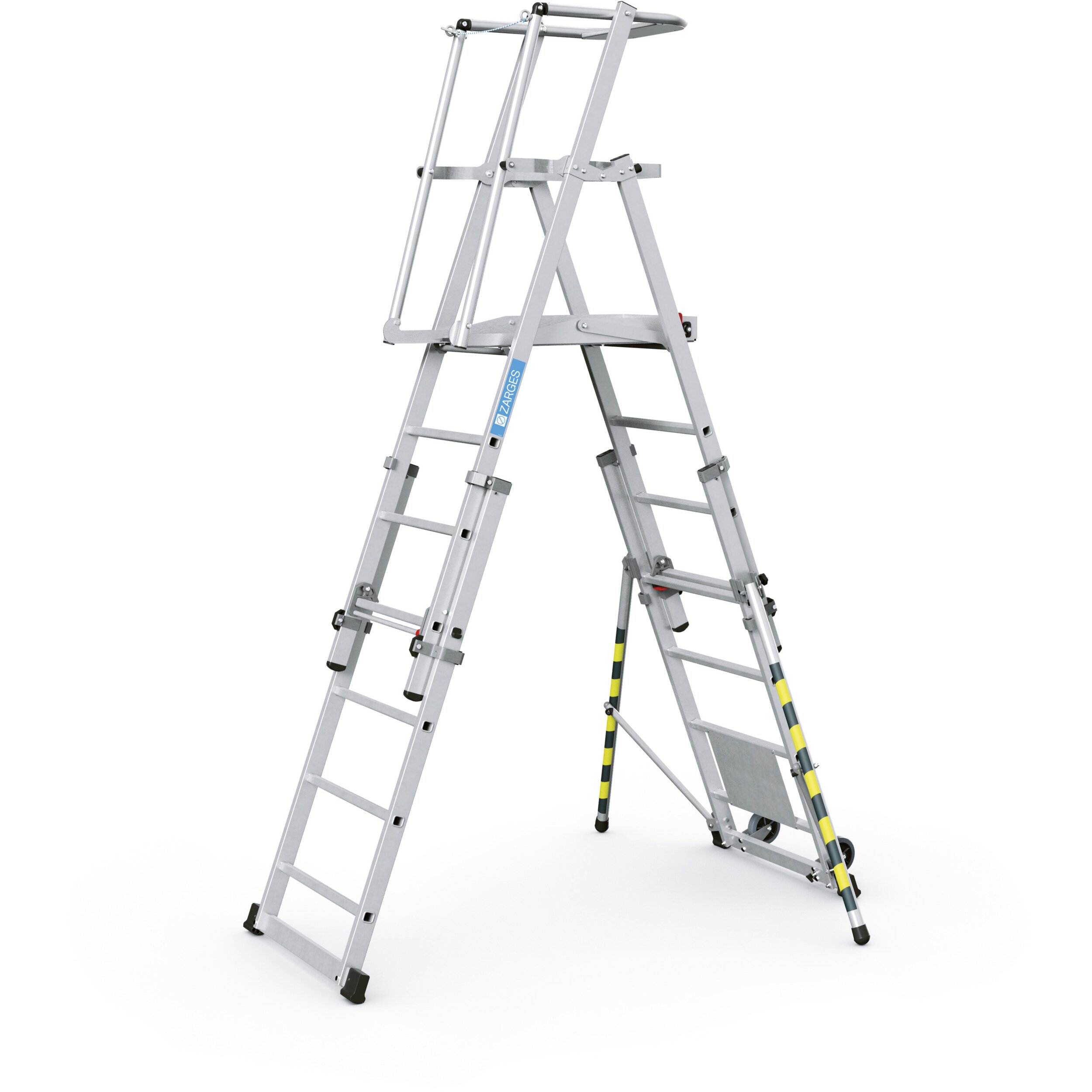 • Simple height adjustment according to the push-up ladder principle, thus different heights can be obtained with only one platform ladder.