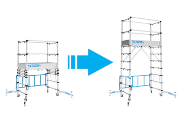 - Telescopic mechanism allows five different platform heights from 1.1m to 2m - working heights from 3m to 4m.