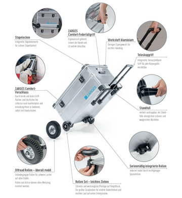 Let wheels take the weight and not your back – by using the ZARGES K 424 XC.