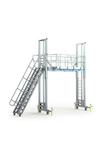 • Höhenverstellbare Zustiegsoptionen: Wählen Sie zwischen Steigleiter, Schiebeleiter oder Treppe. Alle Zustiegsoptionen lassen sich flexibel an die Plattformhöhen anpassen.
