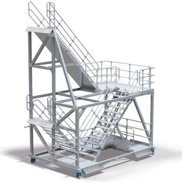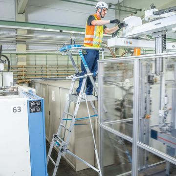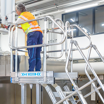 Tehokkaat työtasot ja -portaat koneiden kokoonpanoon, huoltoon ja tarkastuksiin. ZARGES ratkaisut täyttävät EN ISO 14122 standardin vaatimukset ja voidaan mukauttaa mittojen, korkeuden ja työalueen mukaan. Saatavilla myös korkeussäädettävinä malleina ergonomiseen työskentelyyn eri tasoilla.