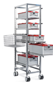 Med ZARGES Medical Sterile OR-logistiklösningar är det nödvändiga materialet snabbt till hands. Mobila skåp med glasdörrar och tydliga märkningssystem säkerställer smidiga processer och förhindrar trängsel i operationsområdet.